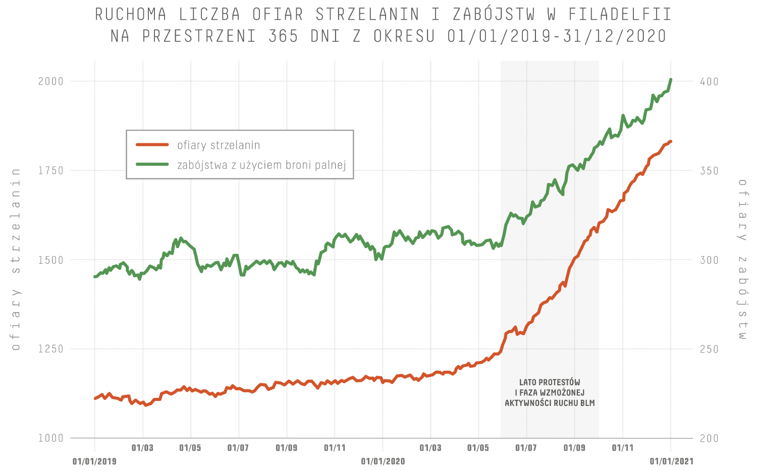 Statystyki precyzyjnie lokują moment eskalacji zabijania u schyłku maja, co koresponduje ze zgonem George’a Floyda i antypolicyjnymi demonstracjami.